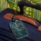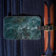Denna robusta bagagetagg har mitt eget fotografi av virvlande djuptealblått havsvatten över steniga strukturer, vilket skapar en djärv och manlig kustdesign. Det mörka, stenliknande mönstret sticker ut på alla resväskor samtidigt som det ser modernt och stilrent ut. Ett bra reseaccessoar och en genomtänkt present till män som älskar naturen, havet eller minimalistisk mörk estetik.