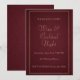 Djup röd vin- och cocktailnatt tema med en rik burgunderfärgad texturerad bakgrund med en dubbel guldram och mjukt script-typografi. Designad för förfinade bakgårdssoaréer, vintillfällen och kvällscocktail-sammanträffanden med en polerad, formell presentation.