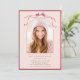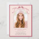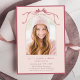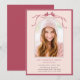Bjud in vänner och familj att fira examen med denna eleganta inbjudan, med en djup rosa bandbåge med ett bågfoto.
