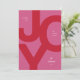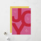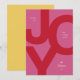 Det här icke-fotografiska julkortet har en djärv typografi och en festlig färgpalett. Julkortet har frasen "Skickar glädje till dig den här högtidsperioden", med ordet "Glädje" skrivet med fet röd bokstavsstil mot en ljus rosa bakgrund. Lägg till ditt familjenamn och året längst ner. Baksidan av kortet har en gul bakgrund och plats att skriva ett personligt meddelande eller lägga till foton om så önskas.