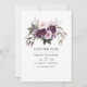 Violett och plommon boho blomsterhandmålad akvarell bröllopsinbjudan med elegant kalligrafi. Perfekt för alla teman eller trädgårdsbröllop.