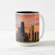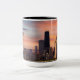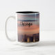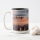 En djup solnedgång lägger sig över Chicago-siluetten och blir fantastiska hemmainredningar, muggar, presentidéer,