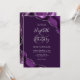 En lila vattenfärgsagatdesign som trimmas med faux silver glitter visas i två hörn av elegantens design. Anpassa den med parets namn i silver grått-handskript över ett stort, muterat lila-ampersand. Lägg till uppgifterna om bröllop i sammanfogning och kursivt typsnitt på djup lila. Den omvända sidan har en matchande lila- och silver-agate-design.