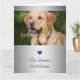 Ett vackert mallfoto från ansikte i en vuxen gyllene hämtare/labrador med en ram från silver som har ett enda fingerblått hjärta med diamanter under vilket ord "våra uppriktiga kondoleanser" visas i ett flytande skript. Anpassa fotot; formuleringen och bakgrunden till färg för att se till att det avslutat kondoleansbudskapet passar det djur du kommer ihåg. Den nuvarande dikt lyder som följer: "Vårt uppriktiga kondoleanser" - Främre innanför täcket Förlorandet av ett omhuldat sällskapsdjur är aldrig lätt, särskilt när de gav dig så mycket glädje att "föra in namn av djur här" har passerat över regnbågen för att se på dig medan du kanske känner att himlen har fått en ny ängel att vaka över dig och du kommer att möta våra uppriktiga kondoleanser till dig och din familj under denna svåra tid.