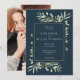 Djupblå Och Guld Foto Grönska Bröllop Inbjudningar