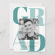 Bjud in gästerna att fira examen med våra examensinbjudningar med djärva bokstäver! De moderna examensinbjudningarna visar examenfotot i mitten omgivet av "Grad" i feta blåa bokstäver. Anpassa framsidan genom att lägga till examenets namn, skola och examensår. Baksidan av inbjudan har utrymme för dina festdetaljer i vitt med en blå bakgrund.