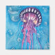 Ursprunglig vattenfärgsmålning av Sandra Gale, med stor lila geléfisk eller Medusa (man) med långa flytande sensorer som rör sig mellan bubblorna i djuphavsvattnet. Underbar design för alla som kärlek sjölevande varelser och våra oceaners djupa ställen. Gör en underbar gåva till dykare, surfare, strandbum eller naturvårdare också!