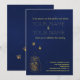 Djupt blå och guld eldflugsvälkomstkort till bröl inbjudningar