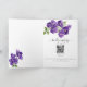 Den djupa Lila Violets Watercolor Bröllop-folkade inbjudan är en fantastisk återgivning av tidlös skönhet och finstilt elegans. Kombinationen av djupa lilor och en lyxig ram i guld skapar en känsla av välstånd och sofistikering, vilket är en förutsättning för en firande i bröllop som är lika spännande som oförglömlig. Den här inbjudan till anpassadet lämnar säkert ett bestående intryck på dina gäster och är som ett omhuldat minne av din speciella dag.