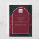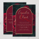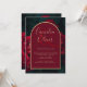 Djupt röda rosor Skoggrön vinterbröllop Inbjudningar