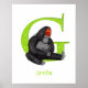 G är för gorilla! Eller Greta, Gary, Geraldine... Lägg till ditt barns namn på detta söta tryck från LeopardyNonsense, med en söt baby gorilla och deras pappa. Kontakta mig om du vill se denna design i en annan färg.