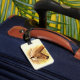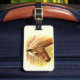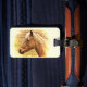 Skräddarsy lätt den tillbaka texten på denna djura bagagemärkre som presenterar en härlig guld- brun häst backlit av den gula solen. På baksidaen är din personliga information och två mer hästar. Gör ditt bagagestativ ut på en flygplatskarusell med unika designer!
