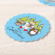 En söt, färglös juldesign underlägg med en polar björn, penguin och mus alla med halsdukar och isskridskor med snö täckt träd och text som lyder Det är jul!