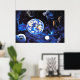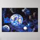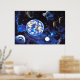 Med utandningsluft som ser ett rymdfärd där djuren flyter i rymden och jorden i botten. Detta är ett vackert foto på denna poster