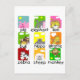 Djuren på vykortet i Parad har olika färgstarka bilder och stil. Djuren omfattar hippo, giraffe, apa, tjur, lejon, elefant, gris, zebra och får.