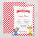Baby showerinbjudan med djurt tema för cirkus och röd randbakgrund.