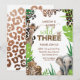 Djur Safari Tredje Födelsedag Ung Vild Och Tre Inbjudningar