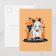 Djurekvinna med svart katt och Halloween-pumpa. Skål höst löv. Glöm broompesten - jag rider in i Halloween med min katt.