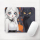 Djurekvinna med svart katt. musmatta