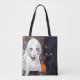 Djurekvinna med svart katt och Halloween-pumpa. Skål höst löv. Glöm broompesten - jag rider in i Halloween med min katt.