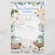 Pojkar, babyduschspel med söta djur som bär masker på en blå blommigt, grön bakgrund. De här snygga babyduschspelsflygarna är dubbla med två olika spel.