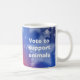 Höj ett tass för att uttrycka ert stöd för animaliska höger. Som djurrättsaktivist kräver ni att era valda ledare ska förhindra grymhet mot alla djurarter. Om inte, kommer de att avvisa er i valurnan i ansikte. Oavsett om ni uppdrag hundar, katter, exotiskt djurliv eller djur i allmänhet, så vet ni att ni är en väljare för animaliska höger och kommer att rösta i nästa val. Du kan använda anpassningsfunktionen för att ändra det här meddelandet till en annan av dina val.