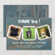 Tack-kort för djurskyddshem med plats för tre foton. Tacka människor för donationer eller för att de deltog / volontärarbetade på en insamlingsaktivitet. Rustik blå trädgårdsdesign med tre gammaldags fotoalbumramar. Lägg till tre foton av några av hemmetts invånare. Texten är vit med stort "tack" högst upp. Och under foton, "Från invånarna på (namn på skyddshem)". Inkludera även mindre text med ytterligare information vid behov. Baksidan har också en rustik trädgårdsbild med en hästsko. Denna design kan också köpas som en direktnedladdning.