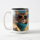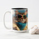 Ett sött kaffe mugg med en lekfull och humoristisk vibe. Mugg har en tecknad-liknande bild av en katt som tittar avslappnad och coola och bär solglasögon. Katten verkar försiktig, som om den bara njuter av solsken. Kombinationen av katten och solglasen ge i mugg är ett modernt och trendigets känsla, perfekt för kattälskare som vill tillföra lite roligt till sina dagliga kaffeögonblick. Färg vid mugg är ljust och glatt, skapar det en roligt och öga som ett tillskott till ditt köksredskap.