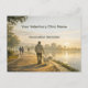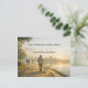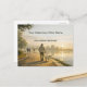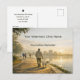 Ge din veterinärklinik ett lugnt och professionellt sätt att påminna kunder om kommande vaccinationer med detta anpassningsbara vykort. Framsidan visar en varm, målad soluppgångsscen där en person går en hund längs vattnet, vilket skapar en mjuk och trygg ton som speglar den vård din klinik tillhandahåller.