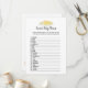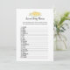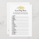 Ett spel om roligt för genderna visar att party är djuret barn namn. Det här spelkortet har blommigtar för gult högst upp. På motsatt sida lutar en nalle på en honungsfat som tittar på ett honungsbin med mallar.