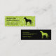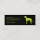 Här är en roligt, och lätt långt att annonsera något älsklings- serva. Huruvida dess presenterar en mobil groomer, en älsklings- sitta, en räddinggrupp, en avelsdjur, vovvedaghem, en hundinstruktör eller hund-gå tjänste-, denna polkaen prack magra visitkort för limefruktgrönt en vinthundsilhouette på rätsidan av kortet som tittar din information om affären. Hunden upprepas på det omvänt i en motsatsfärgkombination. Tillgängligt i omväxlande färger med att matcha produkter.