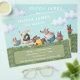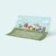 En djuromsorg flygare. Perfekt för en hundpromenad, båt, hund eller hunddagvård. Utformningen består av en illustration av fem roliga hundar som kör ett tävling genom ett fält med blå himmel och moln. Anpassa genom att lägga till din kontaktinformation.