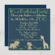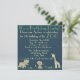 Illustrationer av ett lejon, en giraff och en elefant är centrerade längst ned på detta barns djurparks-inspirerade födelsedagsfest. Runt djuren är gula prästkragar och gröna blad placerade på en mörk teal-bakgrund. Den stora, gröna texten Djurpark är en genomskinlig bild och kan raderas och ersättas med annan text. Anpassa inbjudan med din fest information, välj en annan typsnittsstil, storlek och färg.