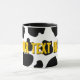 Rolig text för mugg | Personalizable för kotryckkaffe. Kvinnor och ungar för gullig gåvaidé för manar. Svartvitt djurt mönster med gula brev.