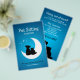 Mall för reklamblad för yrken inom husdjursvård, husdjurs-sittare, djuraffärer, djurhem eller veterinärkliniker med söt illustration (logotyp) av katt och hund på blå bakgrund.