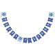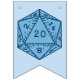 Fira en speciell födelsedag med den här blåa D&D-temat buntbanderoll. Det har dekorationerna ord "Grattis på födelsedagen" och d20 Dice i ett lila tema.