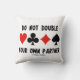 Showcase your wry bridge attitude with a dose of sound bridge advice with this throw pillow featuring the four card suits along with the saying "Do Not Double Your Own Partner". Do a double-take about what partners should never do to other partners at the bridge table with this bridge saying throw pillow! Memorable humorous bridge reminder for any student of bridge.