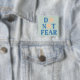 This button has peaceful colors, including a light green background, blue letters and peach colored flowers. A reminder not to be afraid, a sentiment repeated many times in the Bible.