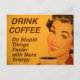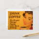 Kvinnor med Bright Red läppar har en kopp kaffe. " Gör Sak snabbare och med mer energi."