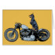 En DobermanPinschersitta på en bobbermotorcykel. T-tröja svettar, noveltygåvabylte.