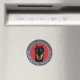 Doberman head badge, i svart med rött- och grått-accenter. Finns som svart huvud i blå grönt och lavendar samt Red, Blue och Fawn/Isabella Doberman färg