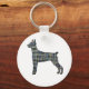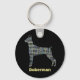 Doberman Hund Silhouette Gult & Black Grid Linjer Nyckelring