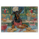 Fånga helgdag glädje att baka med den här härliga scenen med en glad kock omgiven av julgransar och festliga dekorationer. En hjärteberande firande av årstidens sötaste traditioner.