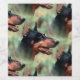 Ljusare tecknad påverkar bilden av en Doberman Pinscher-hund med beskuren öron mot ett bakgrundsprogram för skogsmagasin grönt färg. Perfekt för Dobie hund älskare i dig!