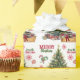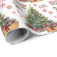 Det upprepade mönster på detta papper för julomslagning innehåller en bild av en liten Doberman Pinscher-marionett sitta i ett torkat basket fyllt med blommor. Basket har en röd båge och sitter bredvid Helgdag träd. Stiliserad röd text och grönt säger GOD JUL", och din egen namnteckning finns i två fält för att du ska kunna anpassa den. Andra bilder som ingår i mönster är rött dekorativt snöflingor, polkagrisar och en peppermint lolly pop.