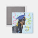 Gratulerar till din favorit student med en gåva med en söt liten Doberman Pinscher student som bär en pansartavla mitt i en fjäder av konetti.