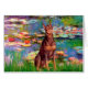 Vatten Lilies av Claude Monet, anpassad till att inkludera en röd Doberman Pinscher.