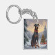 Mitt i en vintersaga njuter en lekfull hund en snöig julmorgon och lämnar efter sig bedårande tassavtryck i den glittrande snön. Deras glädje och nyfikenhet tillför värme till den förtrollande högtidsscenen och gör den verkligt magisk.