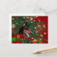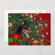 Svart- och solbrännaDobermanpinscheren sitter vid julgranen och bland presenter som väntar precis alla vykort för helgdag för jul för handlinghund älskare beställnings-