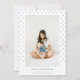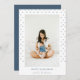 Blåfärgat prickat ram, Lycklig Hanukkah-fotokort för Helgdag. Funktioner, ett foto på framsidan och två fotomallar på baksidan av kortet som samordnar blå bakgrund i färg.